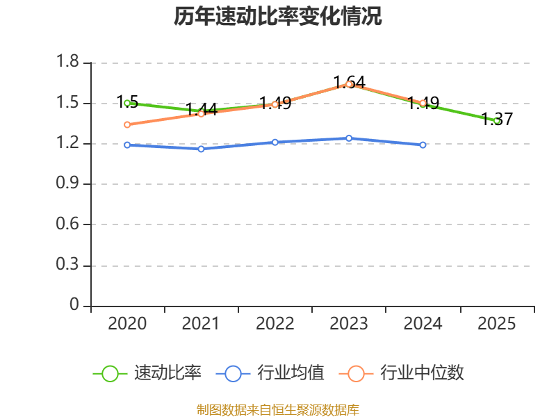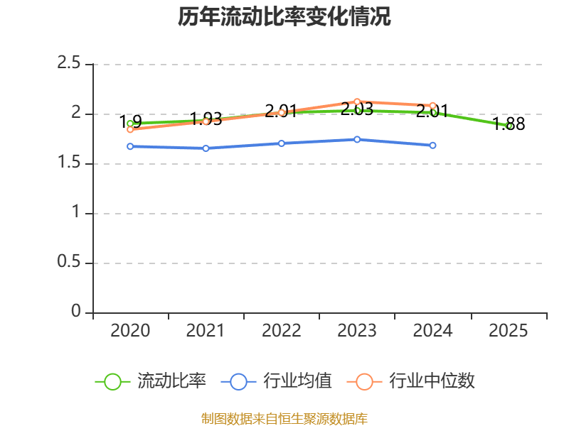 2025年,公司流动比率为1.88,速动比率为1.37。