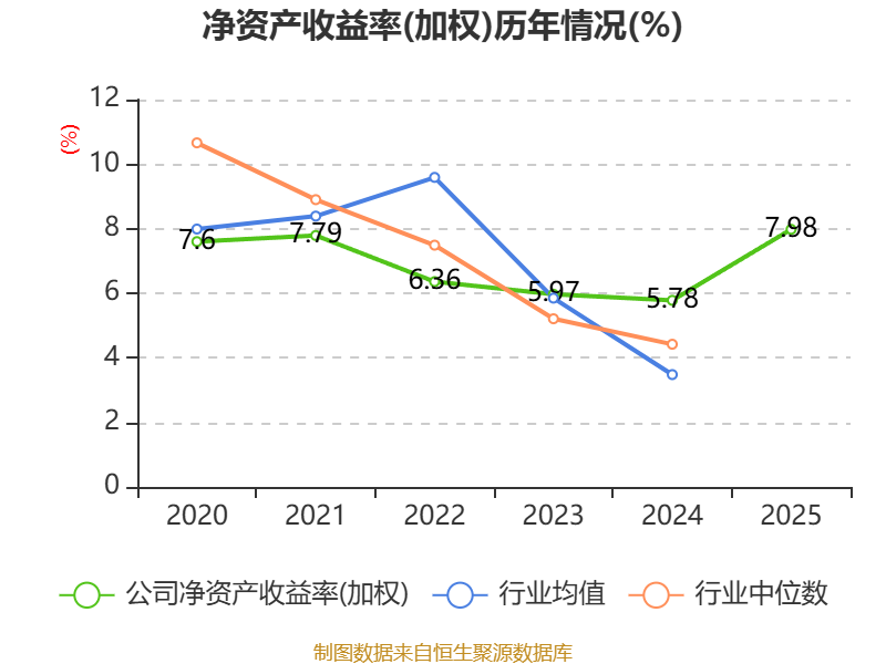 数据显示,2025年公司加权平均净资产收益率为7.98%,较上年同期上升2.2个百分点。公司2025年投入资本回报率为6.05%,较上年同期上升1.84个百分点。