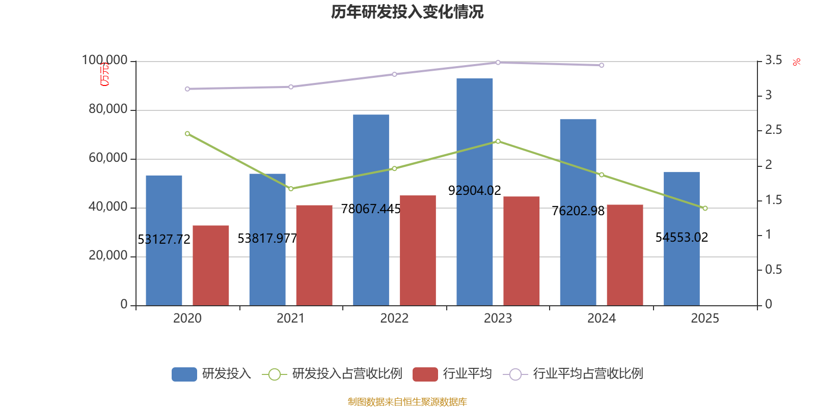 2025年全年,公司研发投入金额为5.46亿元,同比下降28.41%;研发投入占营业收入比例为1.39%,相比上年同期下降0.48个百分点。此外,公司全年研发投入资本化率为0%。