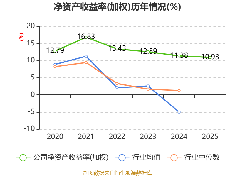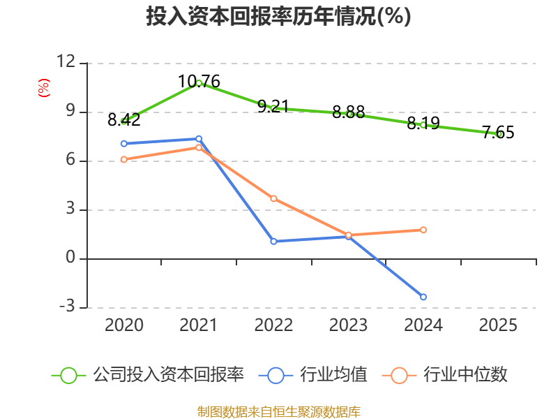 数据显示,2025年公司加权平均净资产收益率为10.93%,较上年同期下降0.45个百分点。公司2025年投入资本回报率为7.65%,较上年同期下降0.54个百分点。