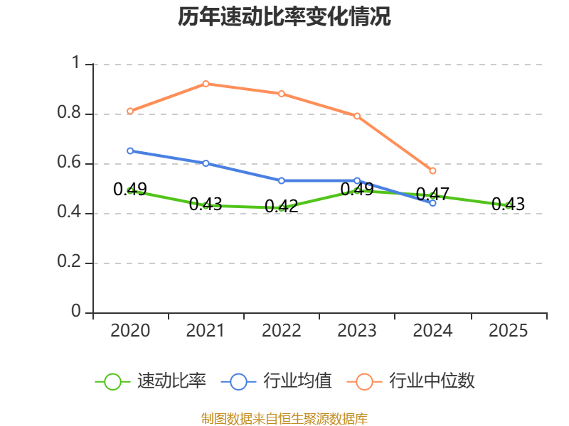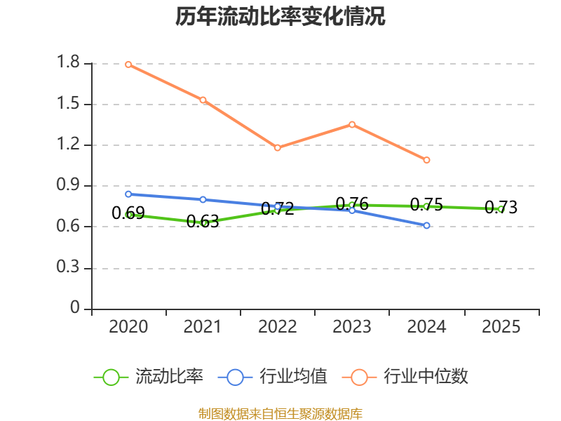 2025年,公司流动比率为0.73,速动比率为0.43。