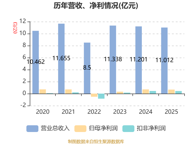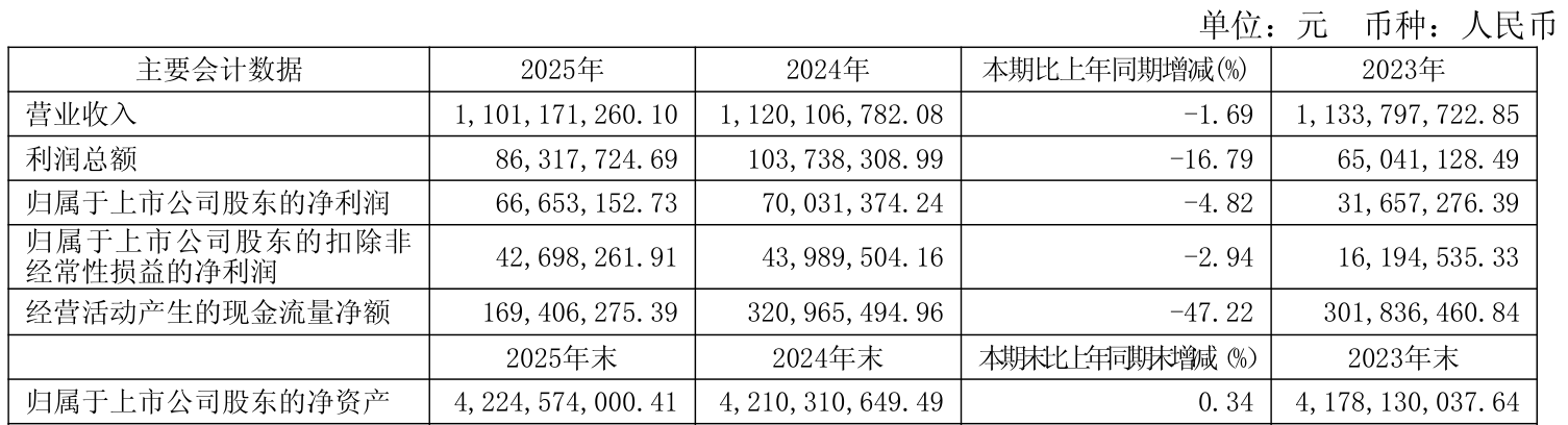 中证智能财讯新世界(600628)4月11日披露2025年年度报告。2025年,公司实现营业总收入11.01亿元,同比下降1.69%;归母净利润6665.32万元,同比下降4.82%;扣非净利润4269.83万元,同比下降2.94%;经营活动产生的现金流量净额为1.69亿元,同比下降47.22%;报告期内,新世界基本每股收益为0.1元,加权平均净资产收益率为1.58%。公司2025年度分配预案为:拟向全体股东每10股派现0.4元(含税)。