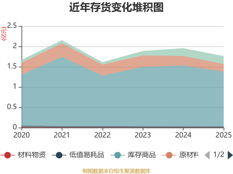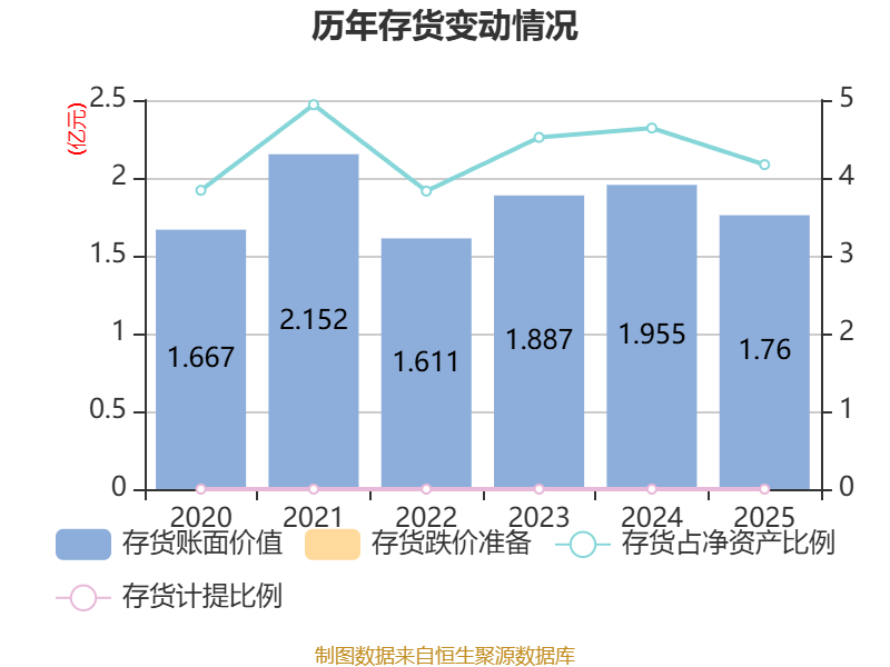 从存货变动来看,截至2025年末,公司存货账面价值为1.76亿元,占净资产的4.17%,较上年末减少1945.38万元。公司本期没有计提存货跌价准备。