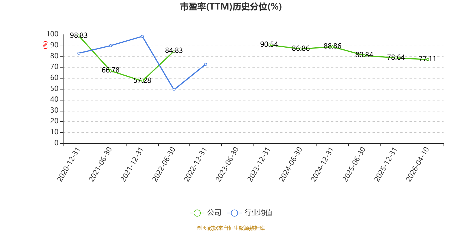 市盈率、市净率为负时,不显示当期分位数,会导致折线图中断。