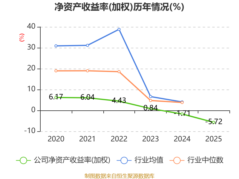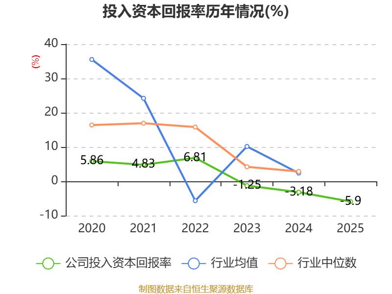 数据显示,2025年公司加权平均净资产收益率为-5.72%,较上年同期下降4.01个百分点。公司2025年投入资本回报率为-5.9%,较上年同期下降2.72个百分点。