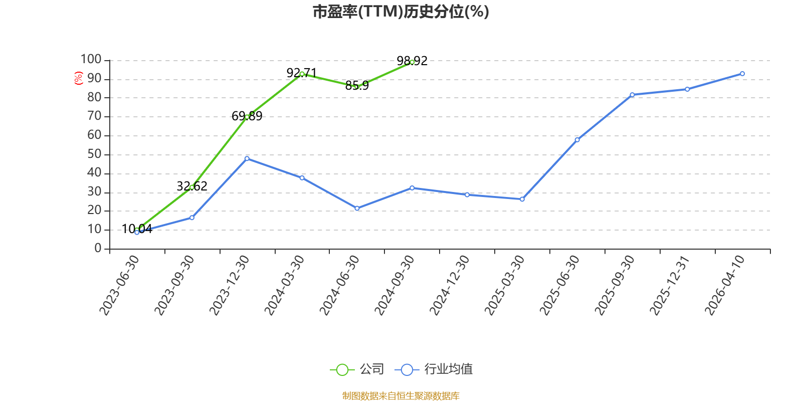 市盈率、市净率为负时,不显示当期分位数,会导致折线图中断。