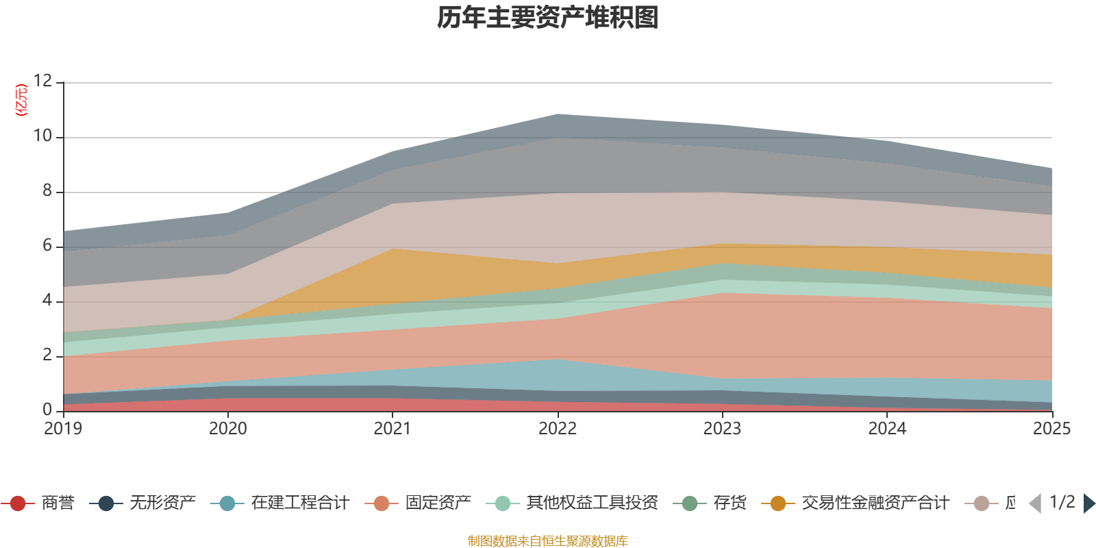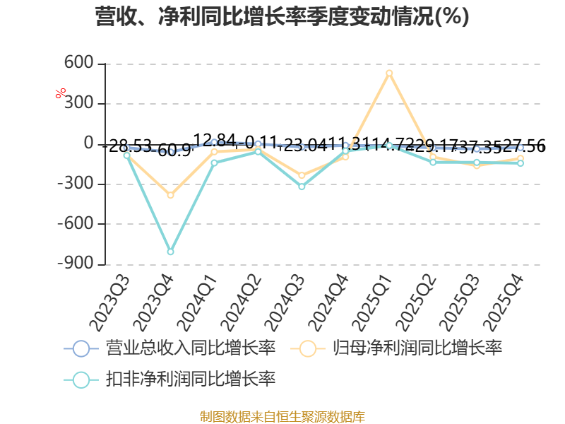 资产重大变化方面,截至2025年末,公司交易性金融资产合计较上年末增加28.61%,占公司总资产比重上升4.1个百分点;货币资金较上年末减少24.57%,占公司总资产比重下降2.26个百分点;在建工程合计较上年末增加14%,占公司总资产比重上升1.91个百分点;无形资产较上年末减少32.17%,占公司总资产比重下降1.02个百分点。
