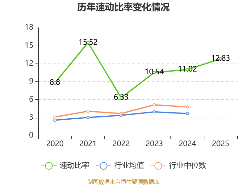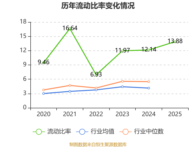 2025年,公司流动比率为13.88,速动比率为12.83。