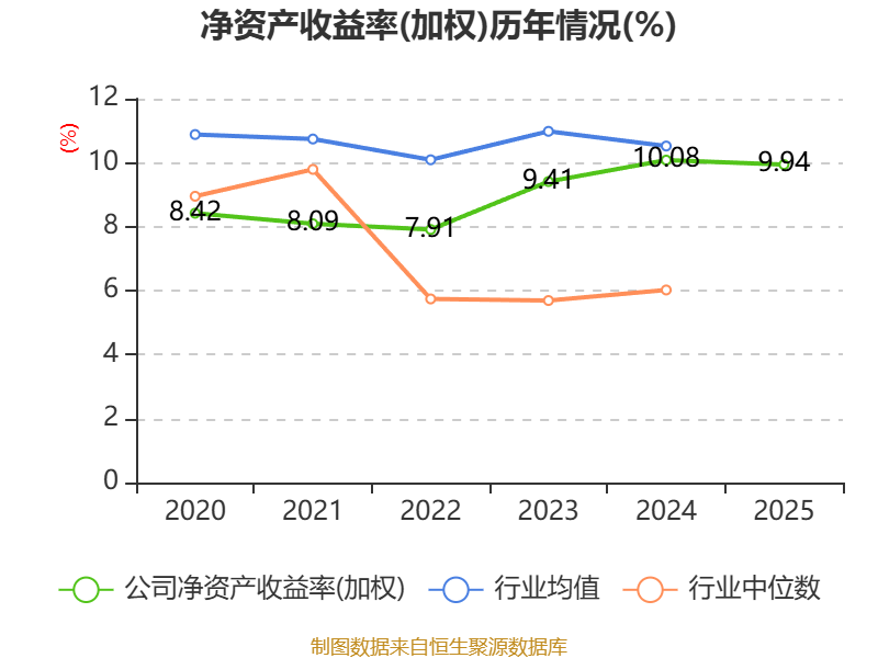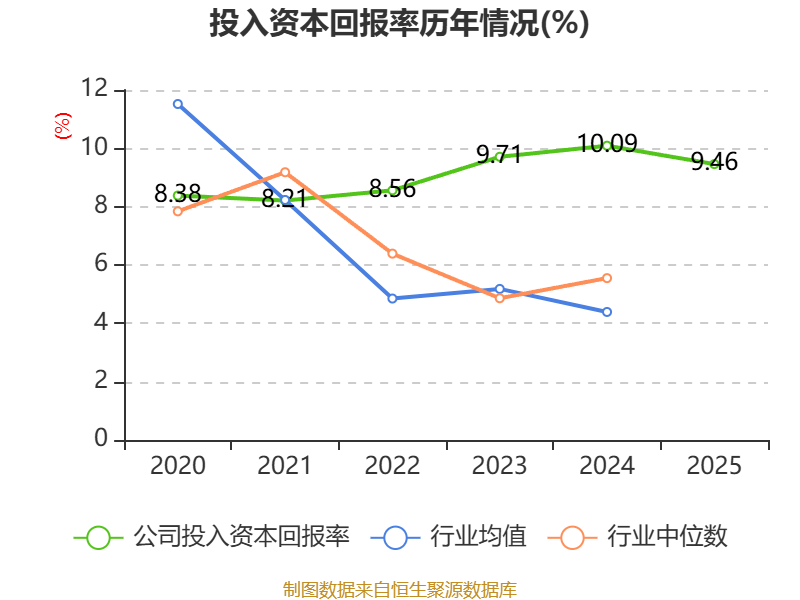 数据显示,2025年公司加权平均净资产收益率为9.94%,较上年同期下降0.14个百分点。公司2025年投入资本回报率为9.46%,较上年同期下降0.63个百分点。