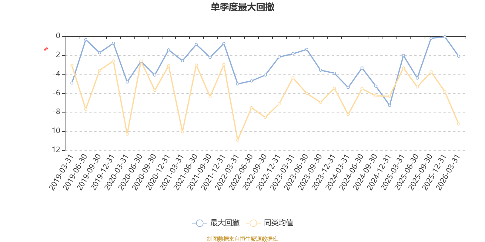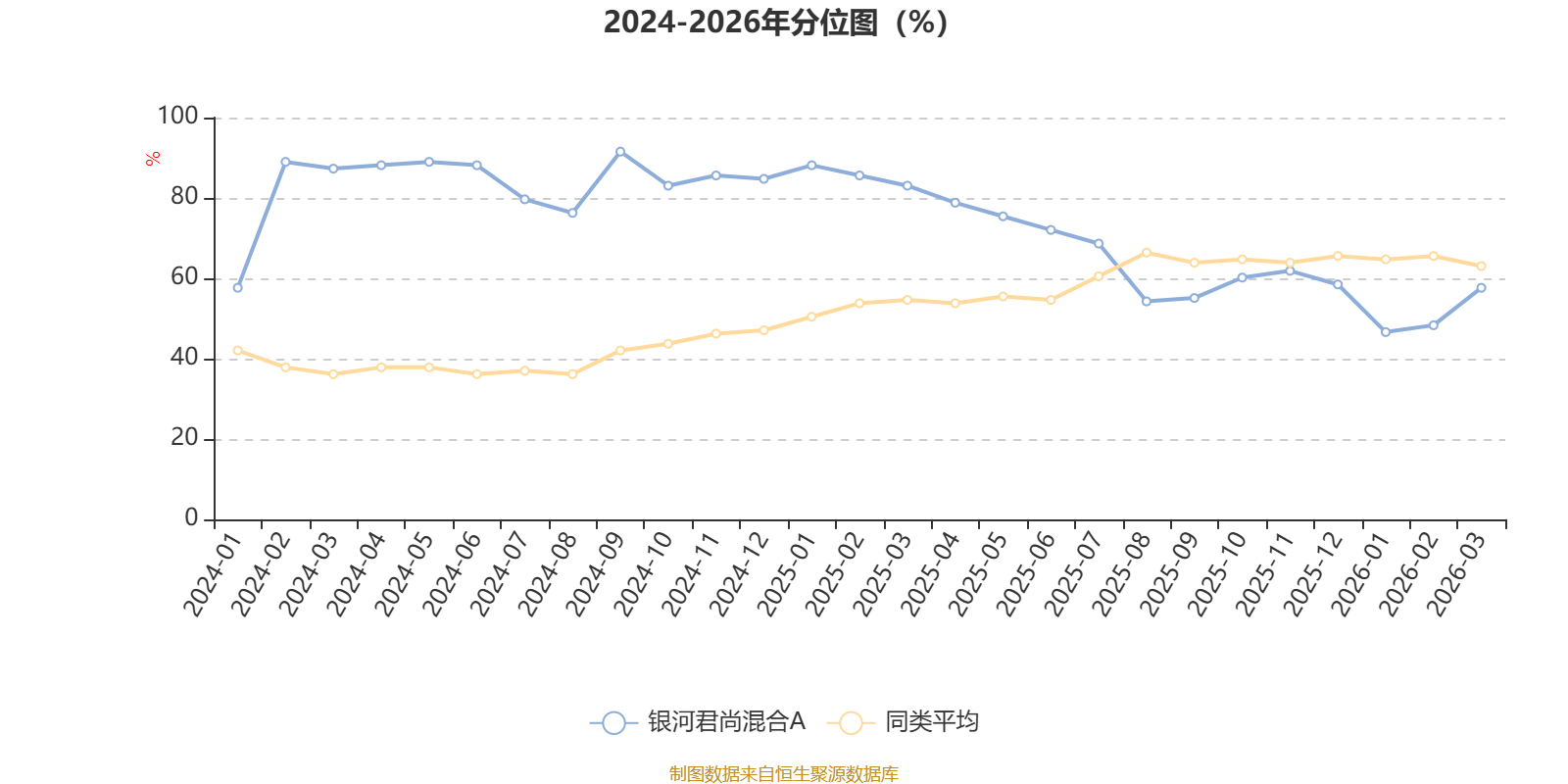 通过所选区间该基金净值增长率分位图,可以观察该基金与同类基金业绩比较情况。图为坐标原点到区间内某时点的净值增长率在同类基金中的分位数。