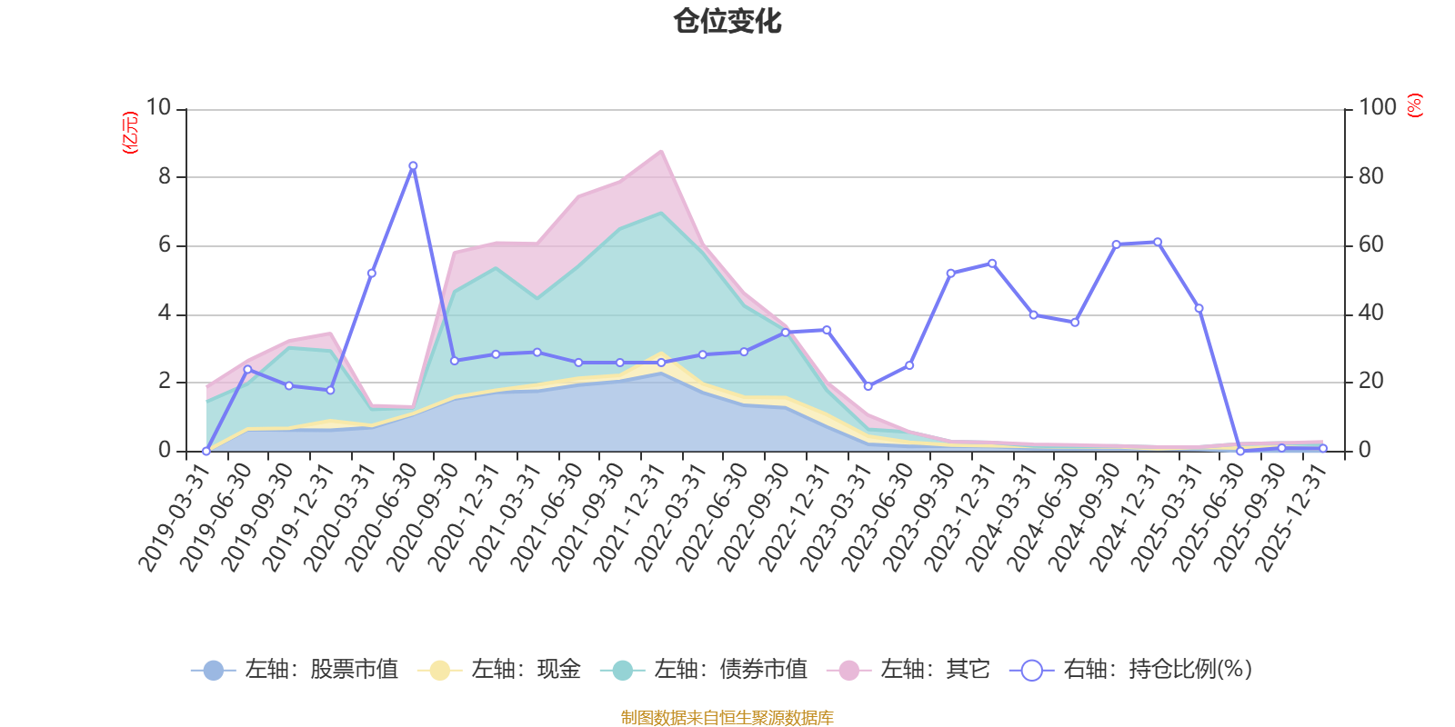 据定期报告数据统计,近三年平均股票仓位为32.8%,同类平均为47.28%。2020年上半年末基金达到83.44%的最高仓位,2025年末最低,为0.82%。