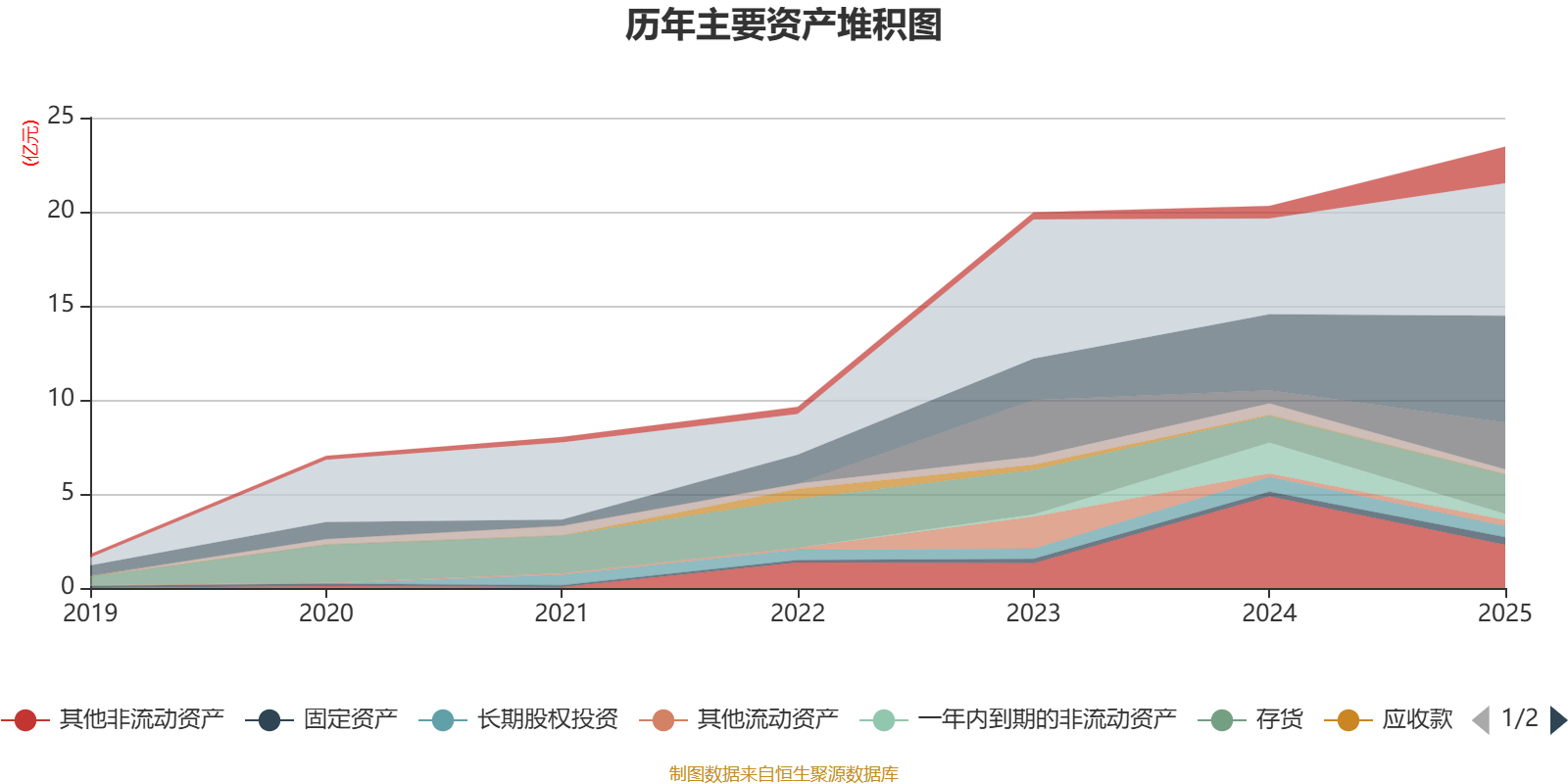 资产重大变化方面,截至2025年末,公司其他非流动资产较上年末减少53%,占公司总资产比重下降14.22个百分点;交易性金融资产合计较上年末增加257.21%,占公司总资产比重上升7.22个百分点;一年内到期的非流动资产较上年末减少80.2%,占公司总资产比重下降6.71个百分点;货币资金较上年末增加38.39%,占公司总资产比重上升4.96个百分点。
