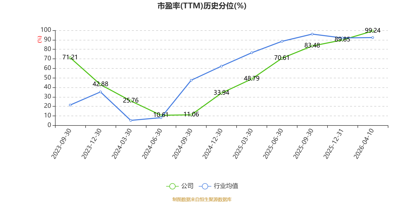 市盈率、市净率为负时,不显示当期分位数,会导致折线图中断。