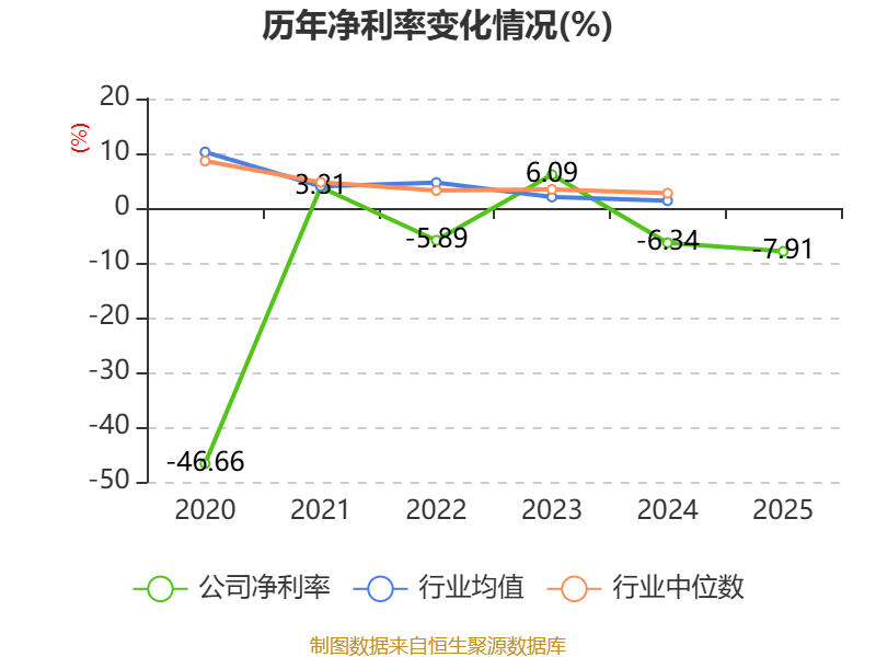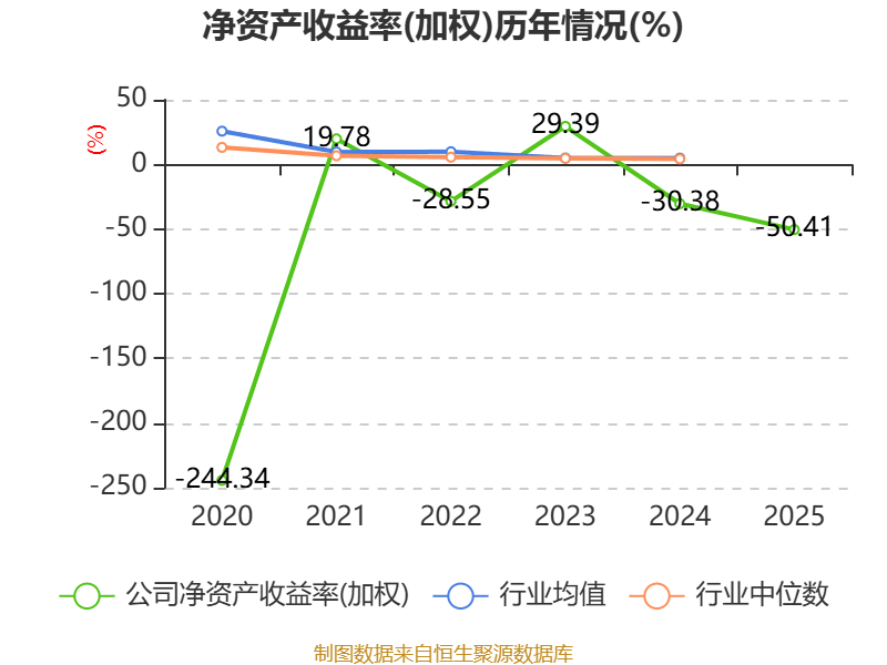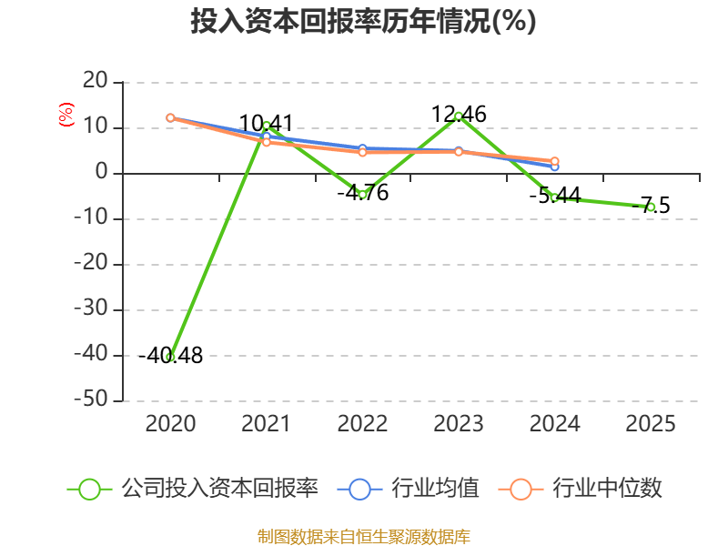 数据显示,2025年公司加权平均净资产收益率为-50.41%,较上年同期下降20.03个百分点。公司2025年投入资本回报率为-7.5%,较上年同期下降2.06个百分点。
