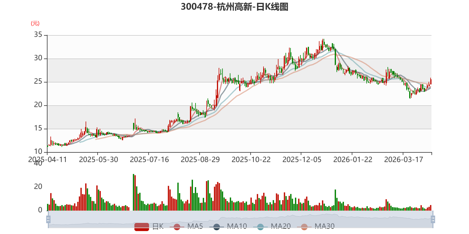 中证智能财讯杭州高新(300478)4月11日披露2025年年度报告。2025年,公司实现营业总收入3.92亿元,同比增长2.08%;归母净利润亏损2735.43万元,上年同期亏损2433.54万元;扣非净利润亏损2740.39万元,上年同期亏损2544.11万元;经营活动产生的现金流量净额为-1519.96万元,上年同期为-116.98万元;报告期内,杭州高新基本每股收益为-0.2159元,加权平均净资产收益率为-50.41%。
