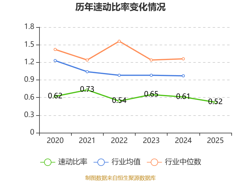 2025年,公司流动比率为0.66,速动比率为0.52。