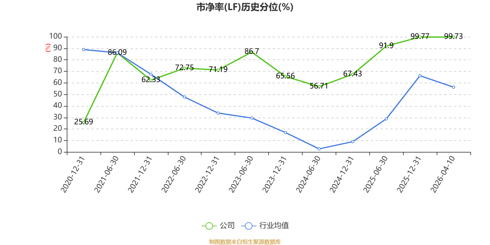 以4月10日收盘价计算,杭州高新目前市盈率(TTM)约为-118.09倍,市净率(LF)约79.6倍,市销率(TTM)约8.25倍。