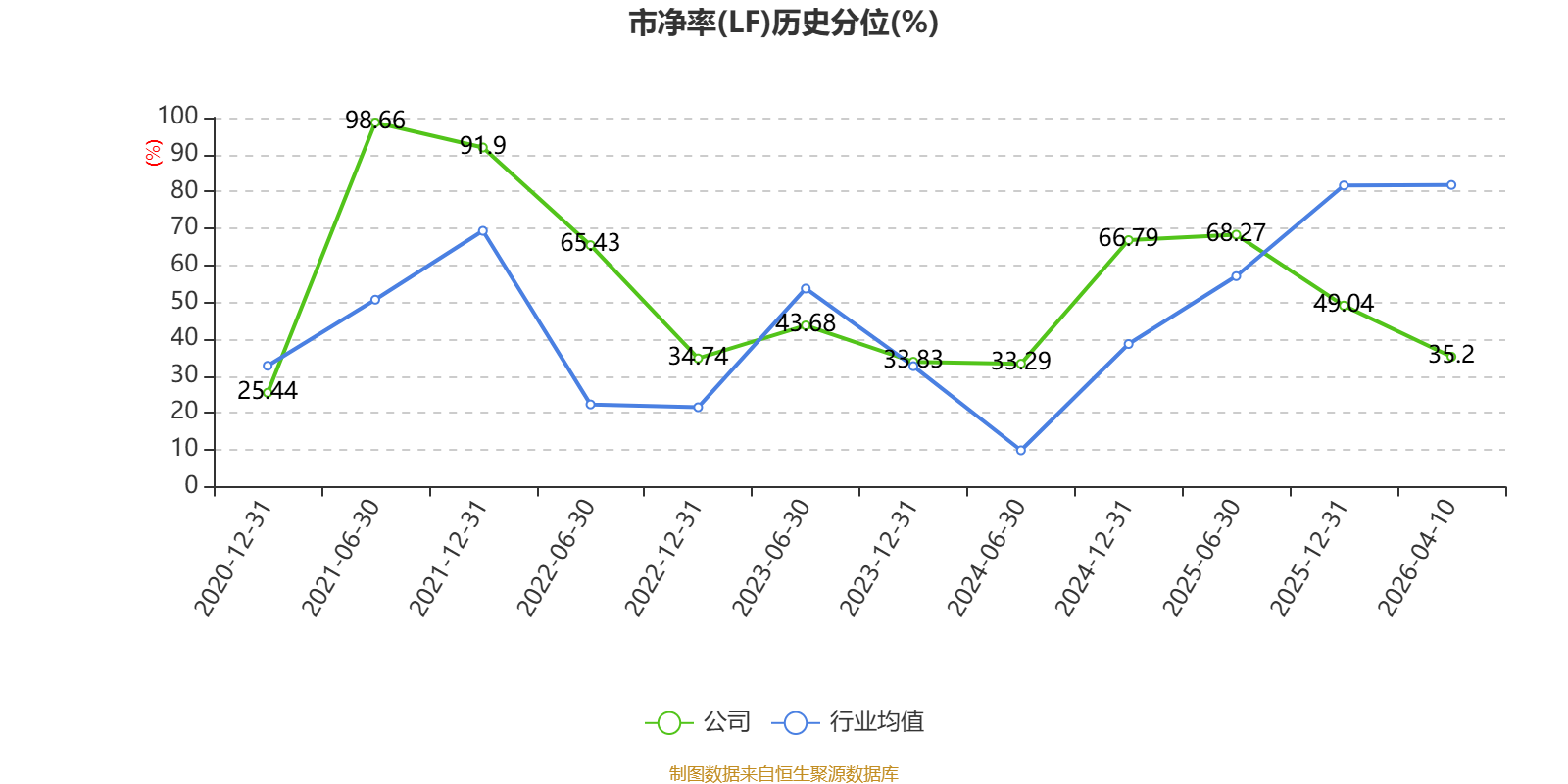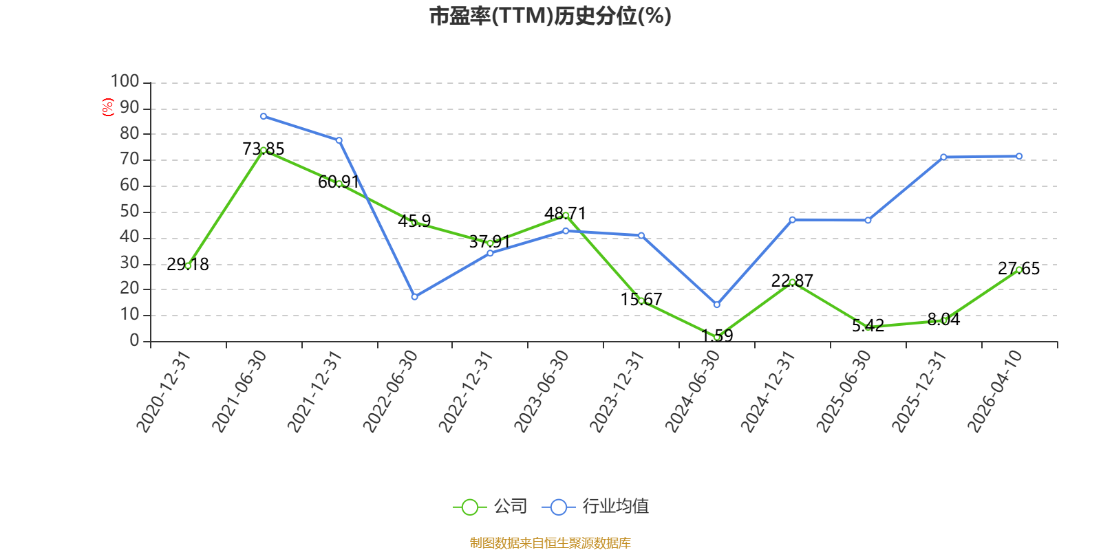 市盈率、市净率为负时,不显示当期分位数,会导致折线图中断。