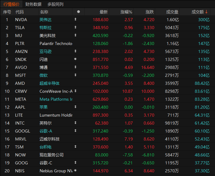 第3名美光收跌0.22%,成交152亿美元。瑞穗将美光科技公司目标价从530美元上调至545美元。