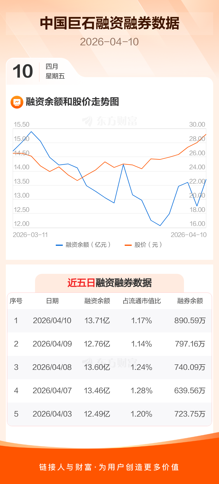 交易所最新数据显示,中国巨石于2026年4月10日获融资买入4.21亿元,融资偿还3.26亿元,当日融资净买入9500.81万元。目前,该股融资余额13.71亿,占流通市值比例为1.17%。