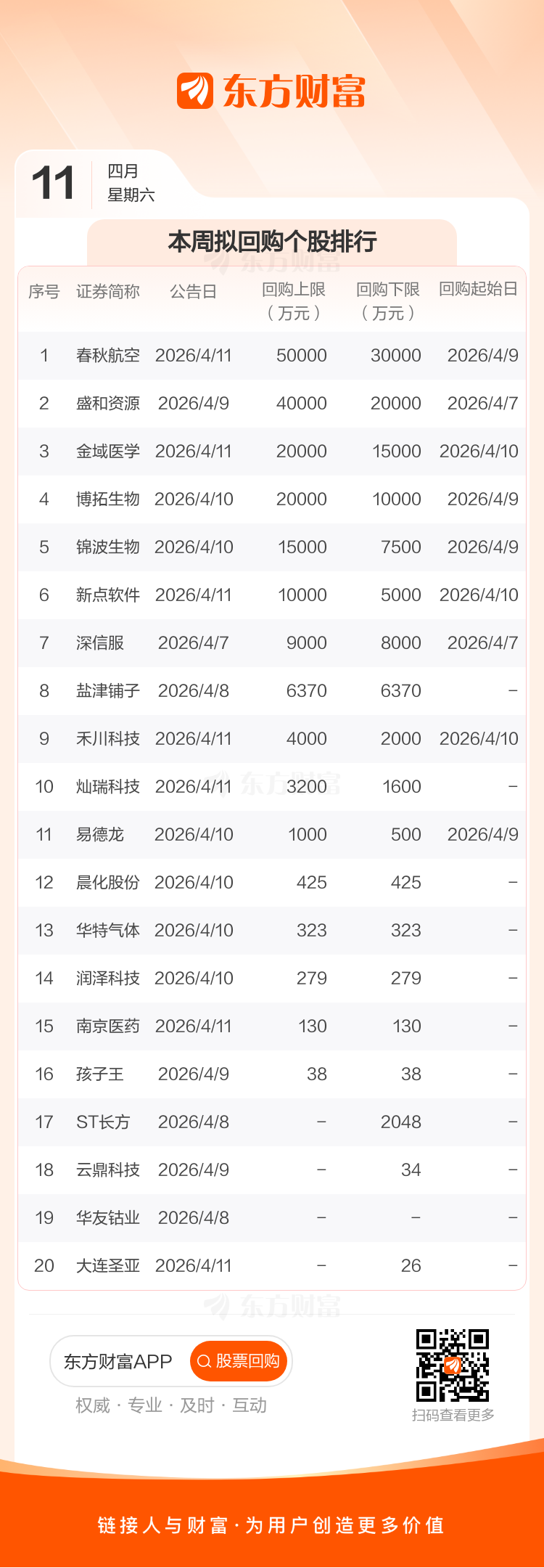 本周回购5.26亿元,拟回购公司新增20家