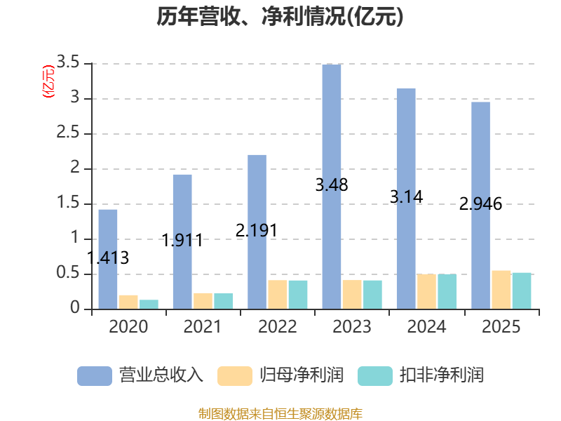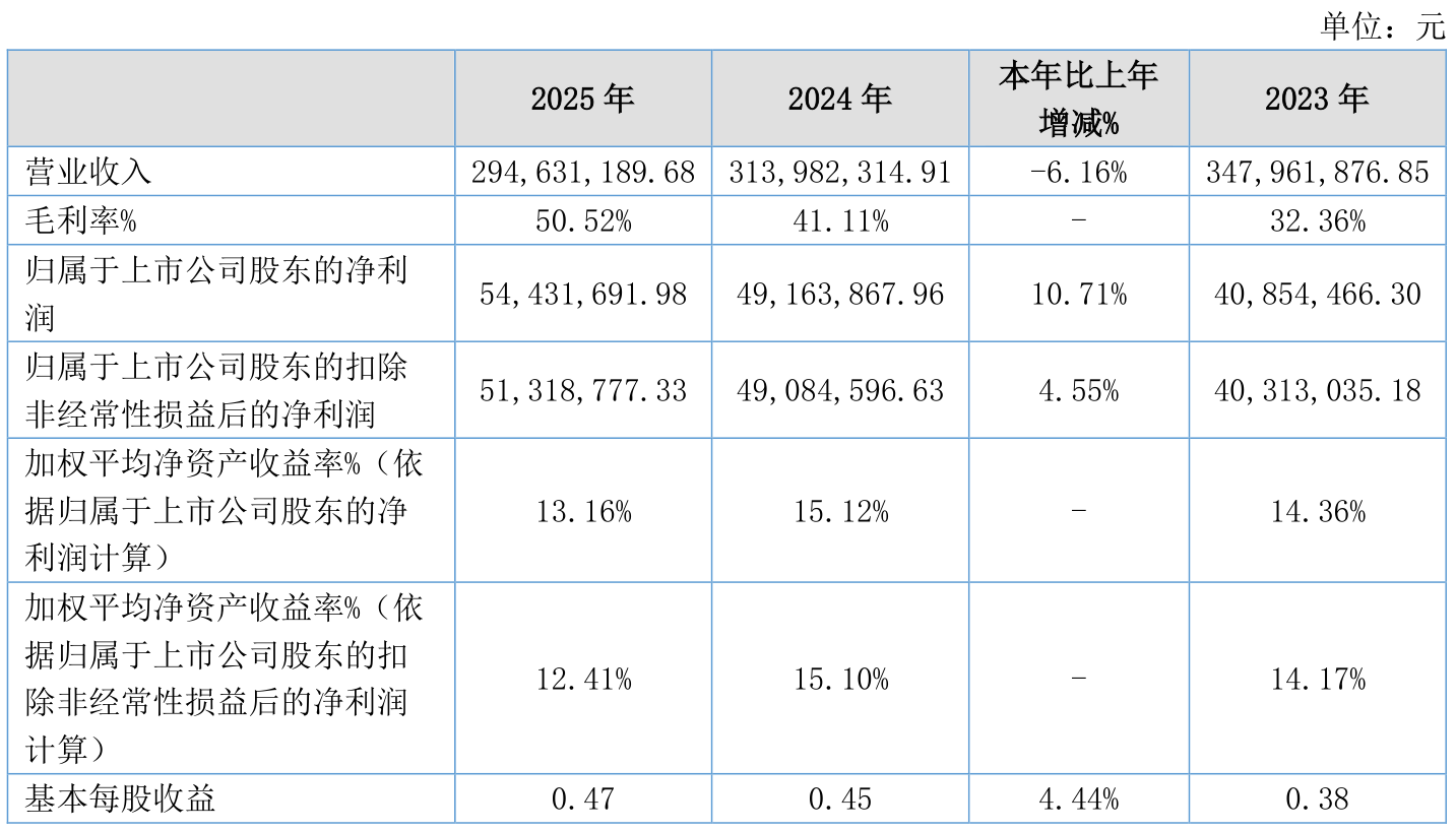 中证智能财讯长江能科(920158)4月10日披露2025年年度报告。2025年,公司实现营业总收入2.95亿元,同比下降6.16%;归母净利润5443.17万元,同比增长10.71%;扣非净利润5131.88万元,同比增长4.55%;经营活动产生的现金流量净额为4858.16万元,同比下降41.80%;报告期内,长江能科基本每股收益为0.47元,加权平均净资产收益率为13.16%。公司2025年度分配预案为:拟向全体股东每10股转4股,派现3.5元(含税)。