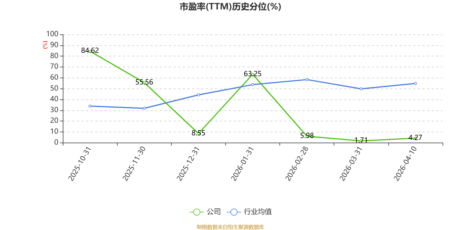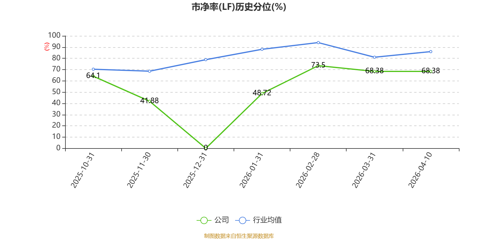 市盈率、市净率为负时,不显示当期分位数,会导致折线图中断。