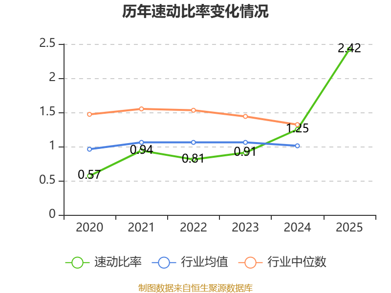 2025年,公司流动比率为2.8,速动比率为2.42。