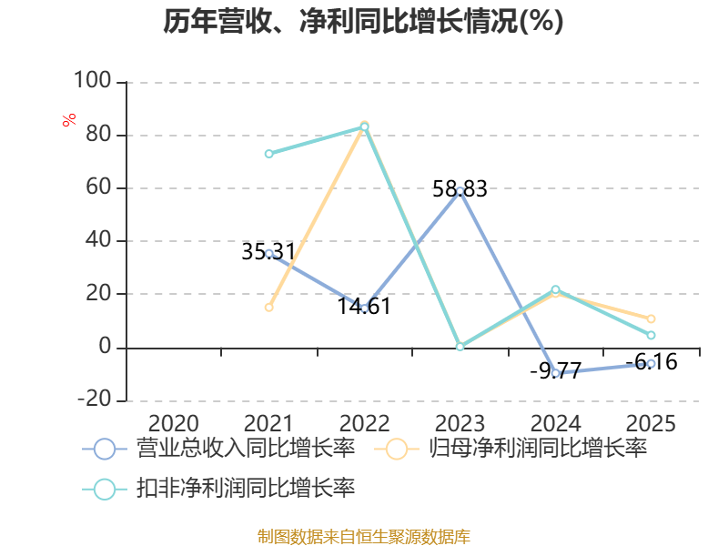 负债重大变化方面,截至2025年末,公司合同负债较上年末减少49.47%,占公司总资产比重下降8.77个百分点;应付票据及应付账款较上年末减少4.25%,占公司总资产比重下降4.43个百分点;短期借款占公司总资产的2.55%,上年末为0;应付职工薪酬较上年末增加2.56%,占公司总资产比重下降1.62个百分点。