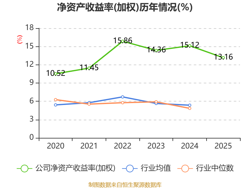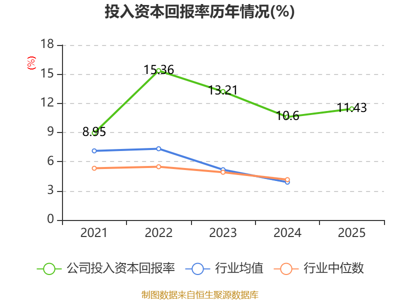 数据显示,2025年公司加权平均净资产收益率为13.16%,较上年同期下降1.96个百分点。公司2025年投入资本回报率为11.43%,较上年同期上升0.83个百分点。