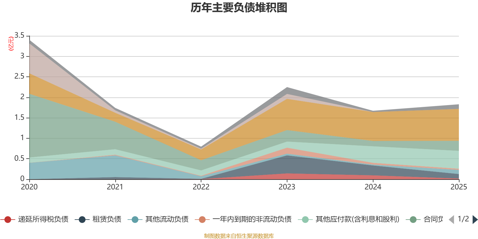负债重大变化方面,截至2025年末,公司租赁负债较上年末减少54.75%,占公司总资产比重下降6.43个百分点;递延所得税负债较上年末减少81.79%,占公司总资产比重下降3.39个百分点;应付票据及应付账款较上年末增加10.52%,占公司总资产比重下降3.3个百分点;合同负债较上年末增加87.89%,占公司总资产比重上升2.79个百分点。