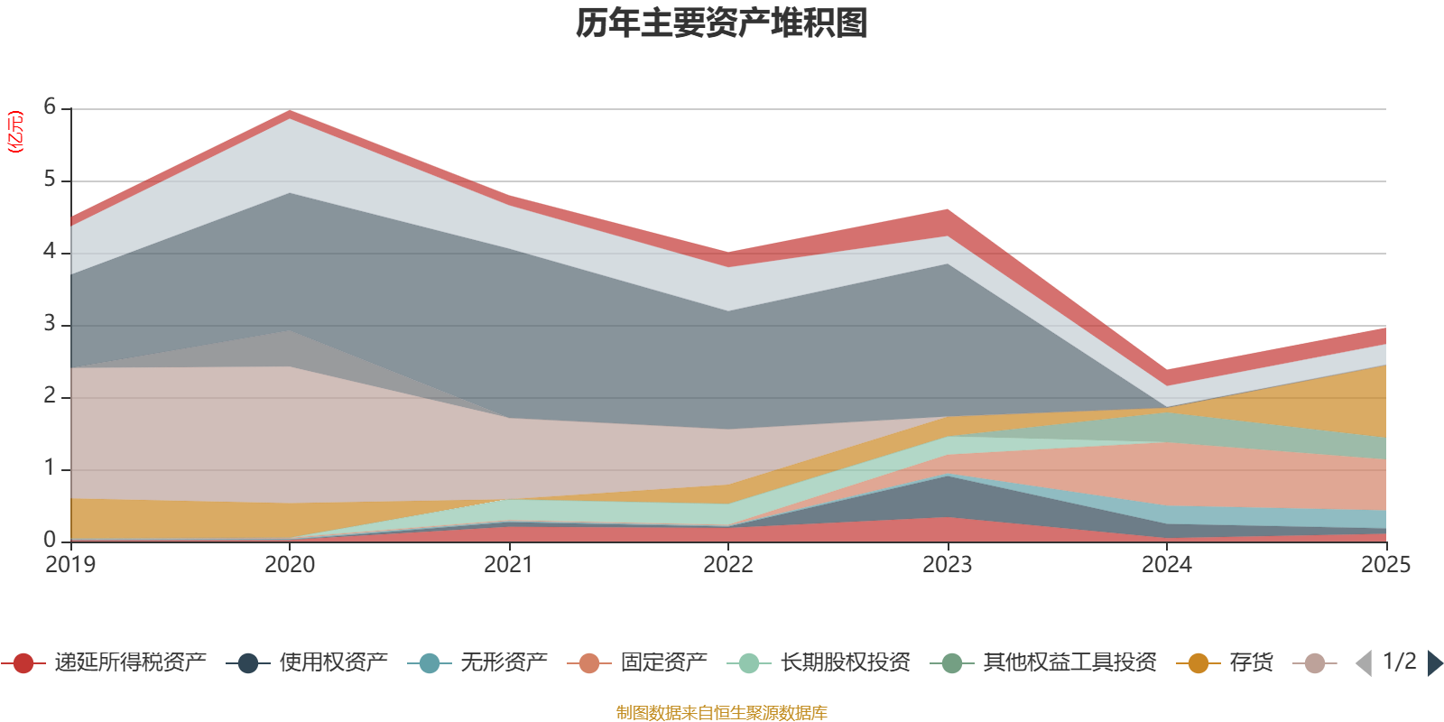 资产重大变化方面,截至2025年末,公司存货较上年末增加1368.87%,占公司总资产比重上升30.99个百分点;固定资产较上年末减少19.66%,占公司总资产比重下降13.09个百分点;其他权益工具投资较上年末减少26.83%,占公司总资产比重下降7.1个百分点;使用权资产较上年末减少61.81%,占公司总资产比重下降5.71个百分点。