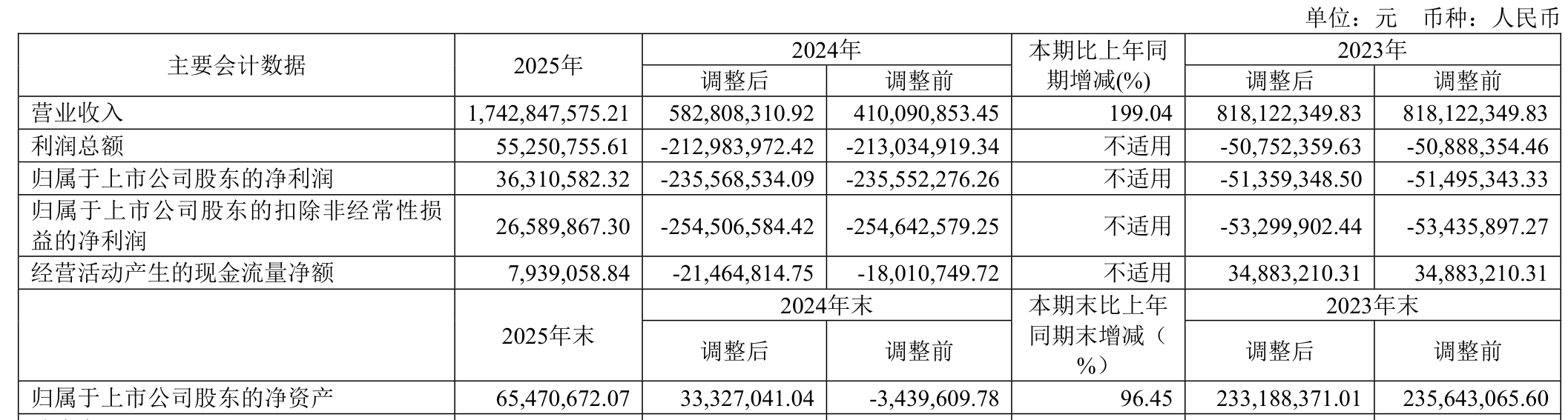 中证智能财讯 *ST海钦(600753)4月11日披露2025年年度报告。2025年,公司实现营业总收入17.43亿元,同比增长199.04%;归母净利润3631.06万元,同比扭亏;扣非净利润2658.99万元,同比扭亏;经营活动产生的现金流量净额为793.91万元,上年同期为-2146.48万元;报告期内,*ST海钦基本每股收益为0.16元,加权平均净资产收益率为75.59%。