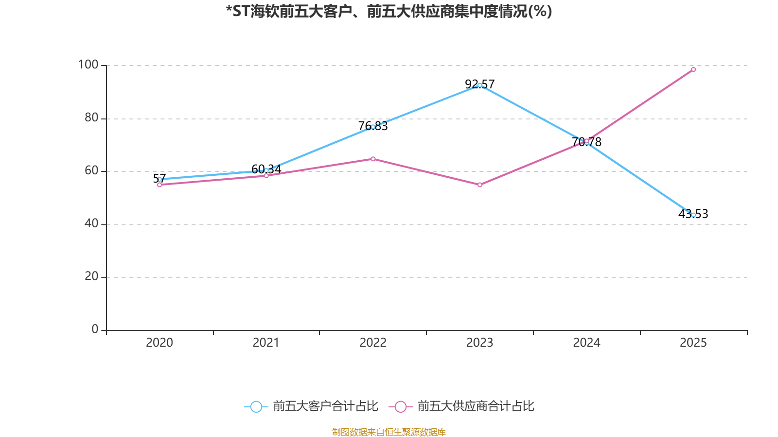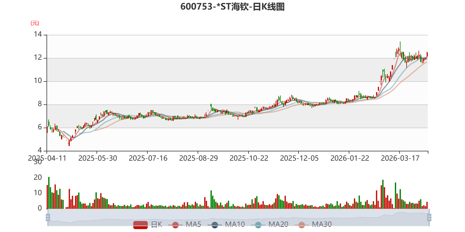 以4月10日收盘价计算,*ST海钦目前市盈率(TTM)约为78.97倍,市净率(LF)约43.8倍,市销率(TTM)约1.65倍。