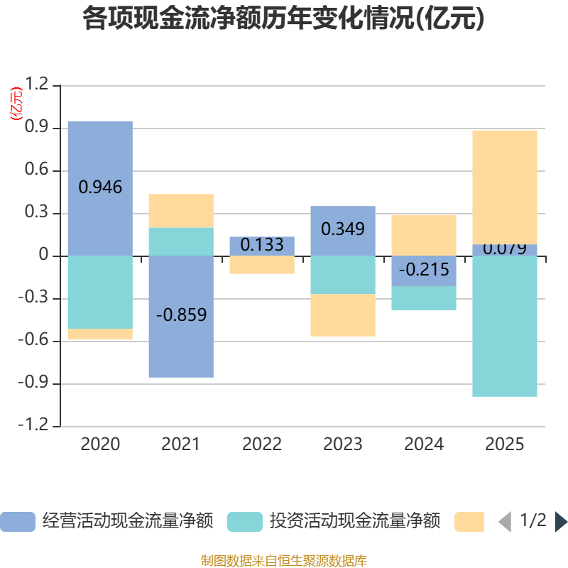 截至2025年,公司经营活动现金流净额为793.91万元,同比增加2940.39万元;筹资活动现金流净额8018.97万元,同比增加5168.35万元;投资活动现金流净额-9935.06万元,上年同期为-1701.08万元。