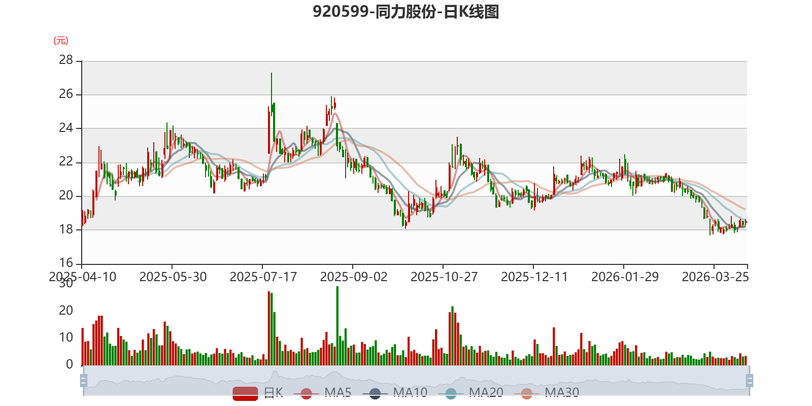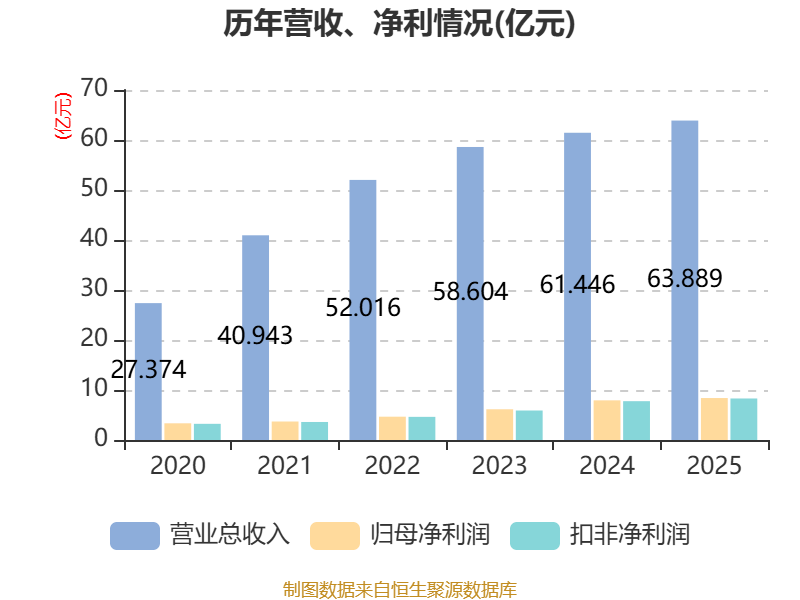 中证智能财讯同力股份(920599)4月10日披露2025年年度报告。2025年,公司实现营业总收入63.89亿元,同比增长3.98%;归母净利润8.39亿元,同比增长5.83%;扣非净利润8.3亿元,同比增长6.97%;经营活动产生的现金流量净额为3.93亿元,同比下降73.24%;报告期内,同力股份基本每股收益为1.8436元,加权平均净资产收益率为24.98%。公司2025年度分配预案为:拟向全体股东每10股派现7元(含税)。