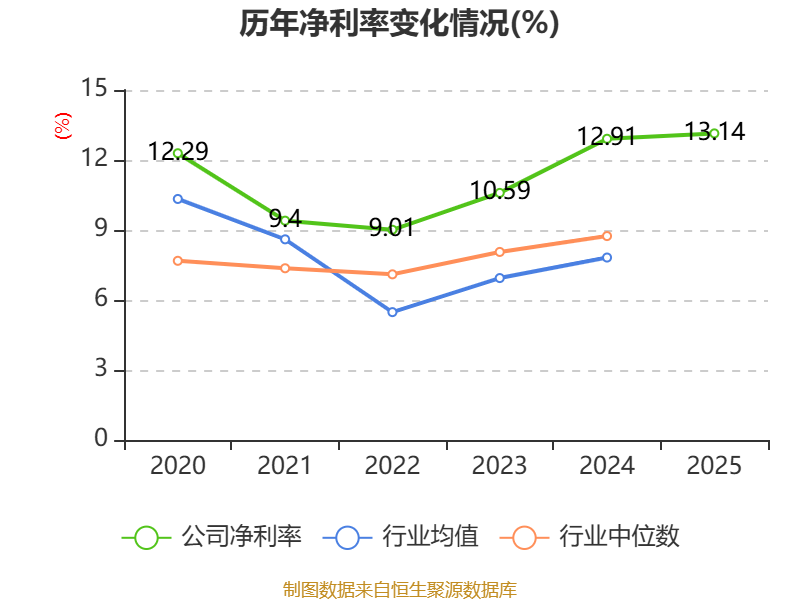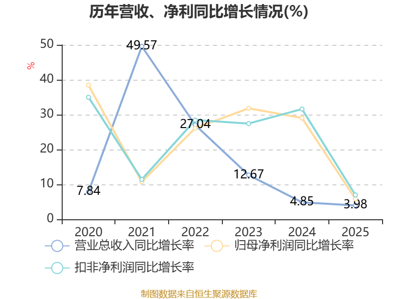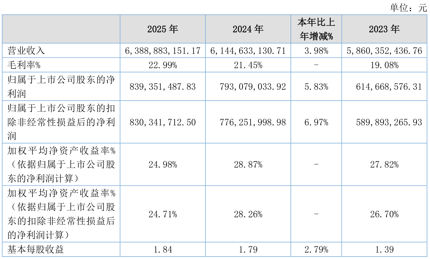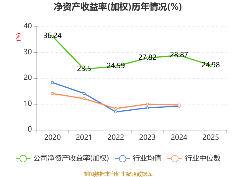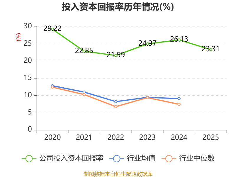 数据显示,2025年公司加权平均净资产收益率为24.98%,较上年同期下降3.89个百分点。公司2025年投入资本回报率为23.31%,较上年同期下降2.82个百分点。