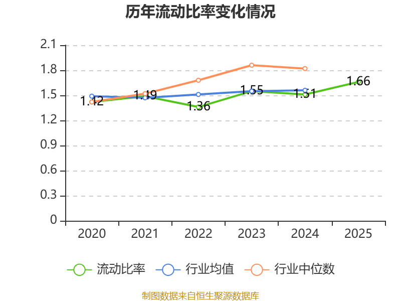 2025年,公司流动比率为1.66,速动比率为1.35。