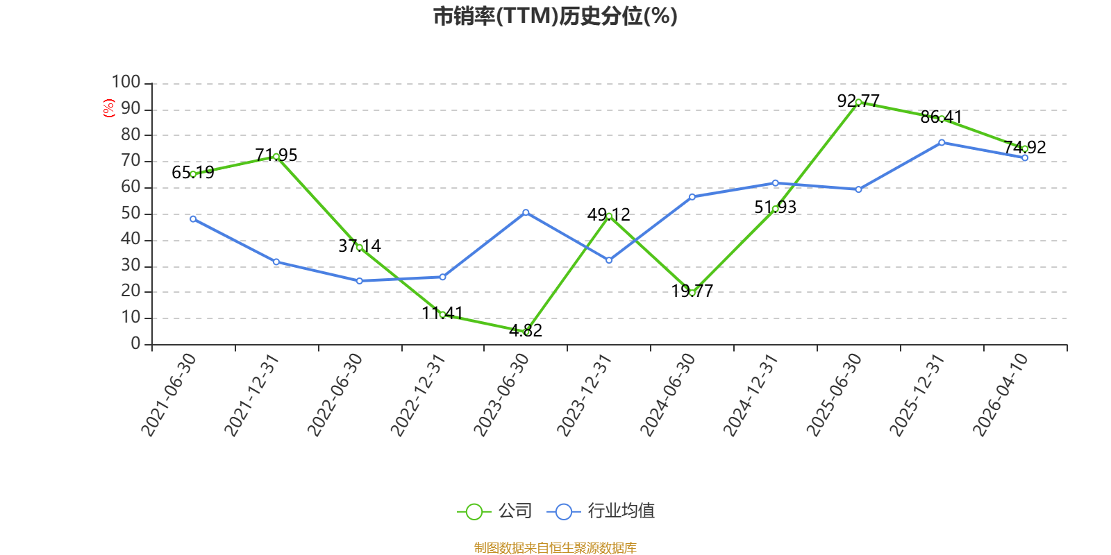 以4月10日收盘价计算,同力股份目前市盈率(TTM)约为10.19倍,市净率(LF)约2.37倍,市销率(TTM)约1.34倍。