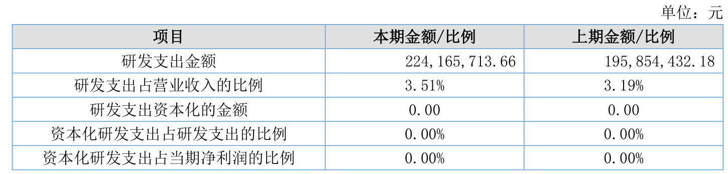 2025年全年,公司研发投入金额为2.24亿元,同比增长14.46%;研发投入占营业收入比例为3.51%,相比上年同期上升0.32个百分点。此外,公司全年研发投入资本化率为0%。