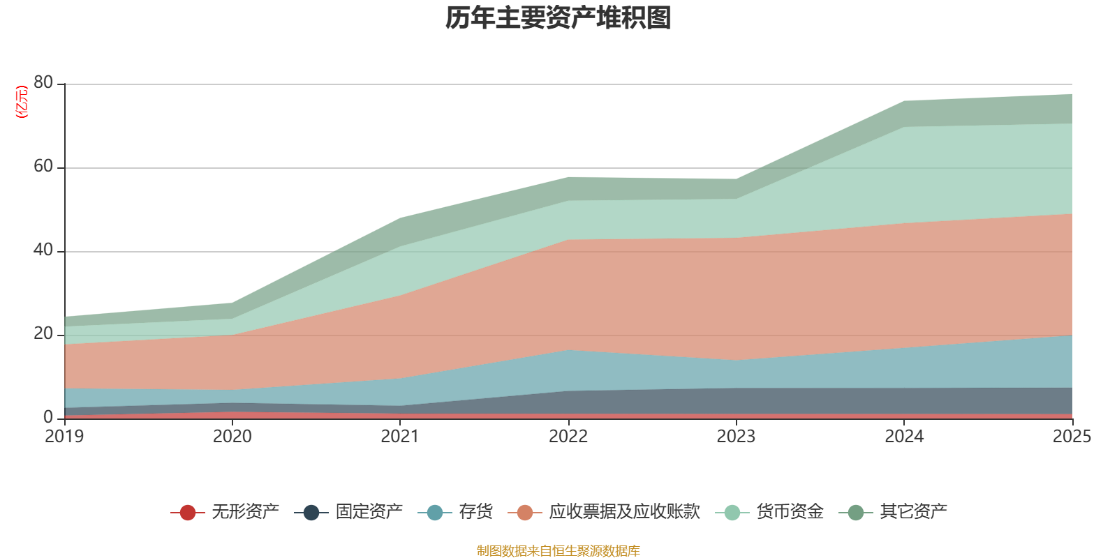 资产重大变化方面,截至2025年末,公司存货较上年末增加30.45%,占公司总资产比重上升3.51个百分点;货币资金较上年末减少6.37%,占公司总资产比重下降2.51个百分点;预付款项较上年末减少90.12%,占公司总资产比重下降2.48个百分点;一年内到期的非流动资产占公司总资产的1.94%,上年末为0。