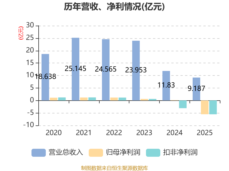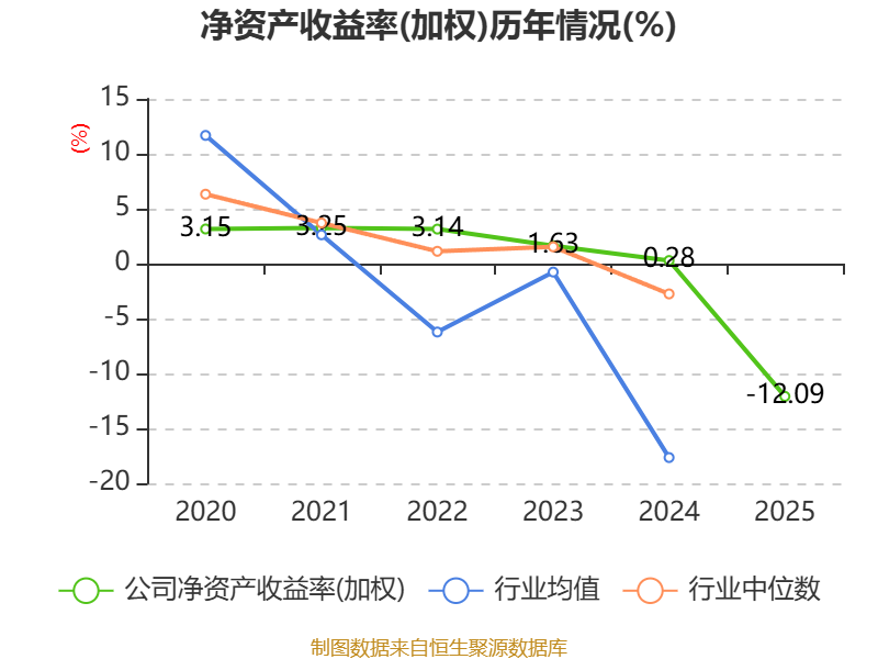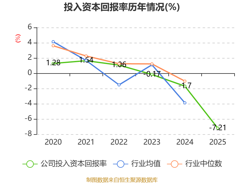 数据显示,2025年公司加权平均净资产收益率为-12.09%,较上年同期下降12.37个百分点。公司2025年投入资本回报率为-7.21%,较上年同期下降5.51个百分点。