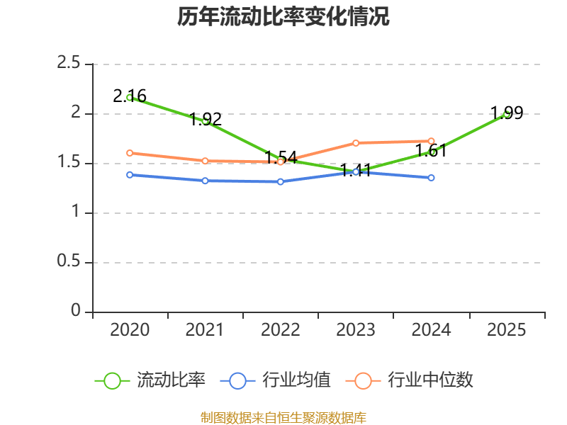 2025年,公司流动比率为1.99,速动比率为0.23。