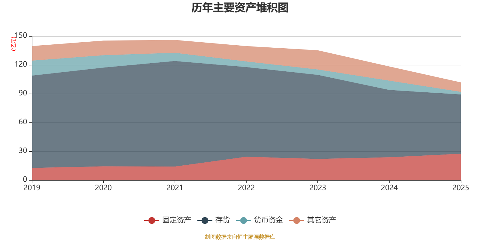 资产重大变化方面,截至2025年末,公司固定资产较上年末增加15.38%,占公司总资产比重上升6.86个百分点;货币资金较上年末减少71.38%,占公司总资产比重下降5.47个百分点;在建工程合计较上年末减少100%,占公司总资产比重下降3.35个百分点;存货较上年末减少11.93%,占公司总资产比重上升1.45个百分点。