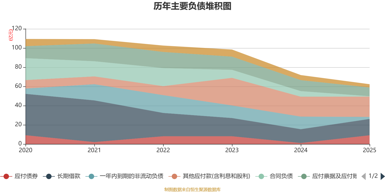 负债重大变化方面,截至2025年末,公司一年内到期的非流动负债较上年末减少83.62%,占公司总资产比重下降8.98个百分点;应付债券较上年末增加796.18%,占公司总资产比重上升8.05个百分点;长期借款较上年末增加18.24%,占公司总资产比重上升4.56个百分点;合同负债较上年末减少93.84%,占公司总资产比重下降4.55个百分点。