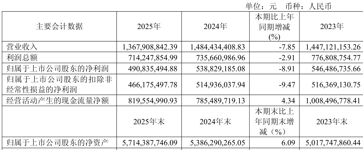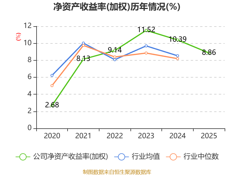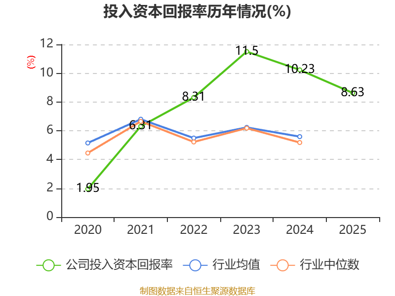 数据显示,2025年公司加权平均净资产收益率为8.86%,较上年同期下降1.53个百分点。公司2025年投入资本回报率为8.63%,较上年同期下降1.6个百分点。