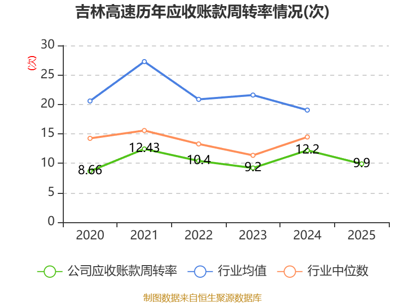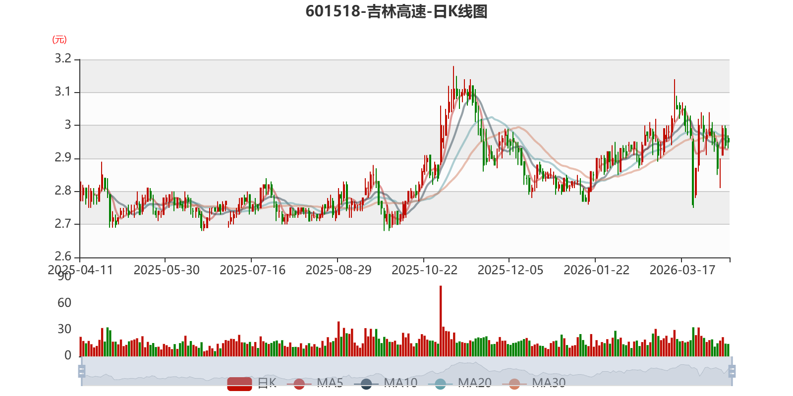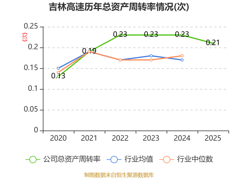 中证智能财讯吉林高速(601518)4月11日披露2025年年度报告。2025年,公司实现营业总收入13.68亿元,同比下降7.85%;归母净利润4.91亿元,同比下降8.91%;扣非净利润4.66亿元,同比下降9.47%;经营活动产生的现金流量净额为8.2亿元,同比增长4.34%;报告期内,吉林高速基本每股收益为0.26元,加权平均净资产收益率为8.86%。公司2025年度分配预案为:拟向全体股东每10股派现1.3元(含税)。