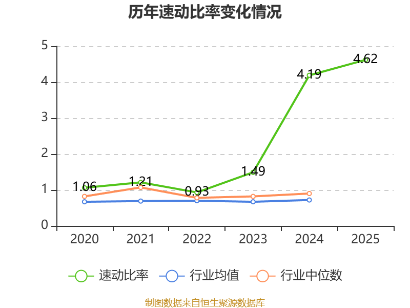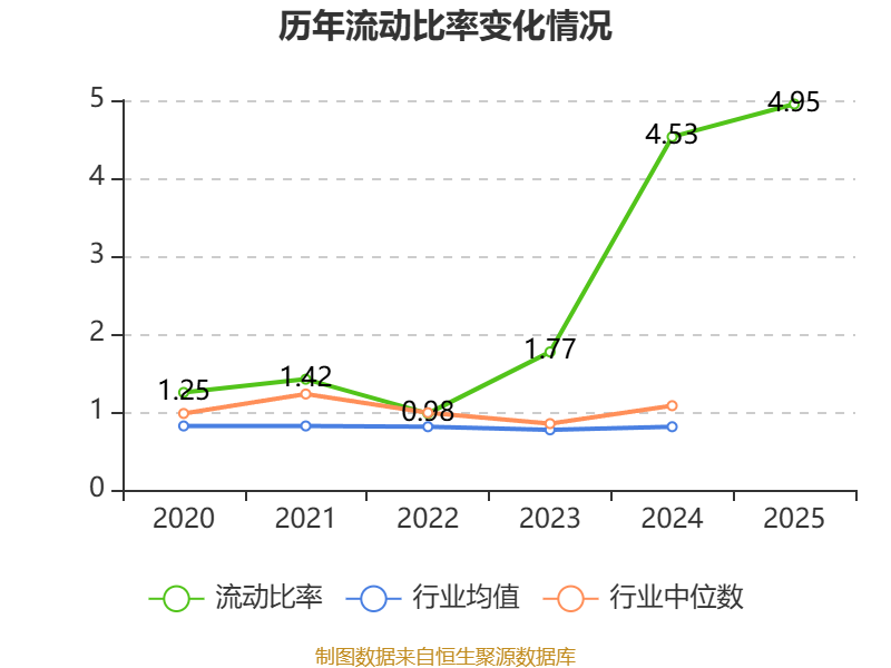 2025年,公司流动比率为4.95,速动比率为4.62。
