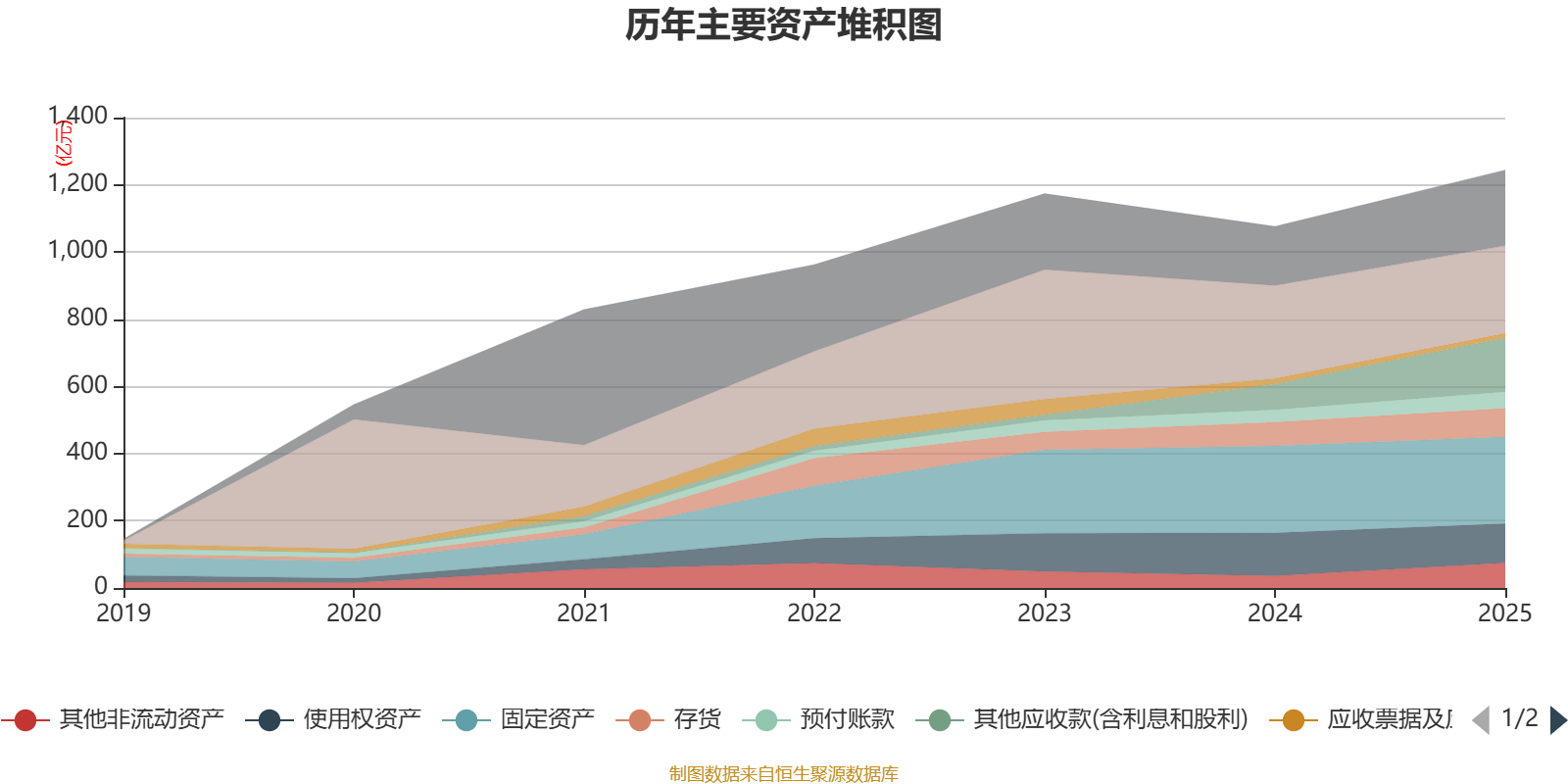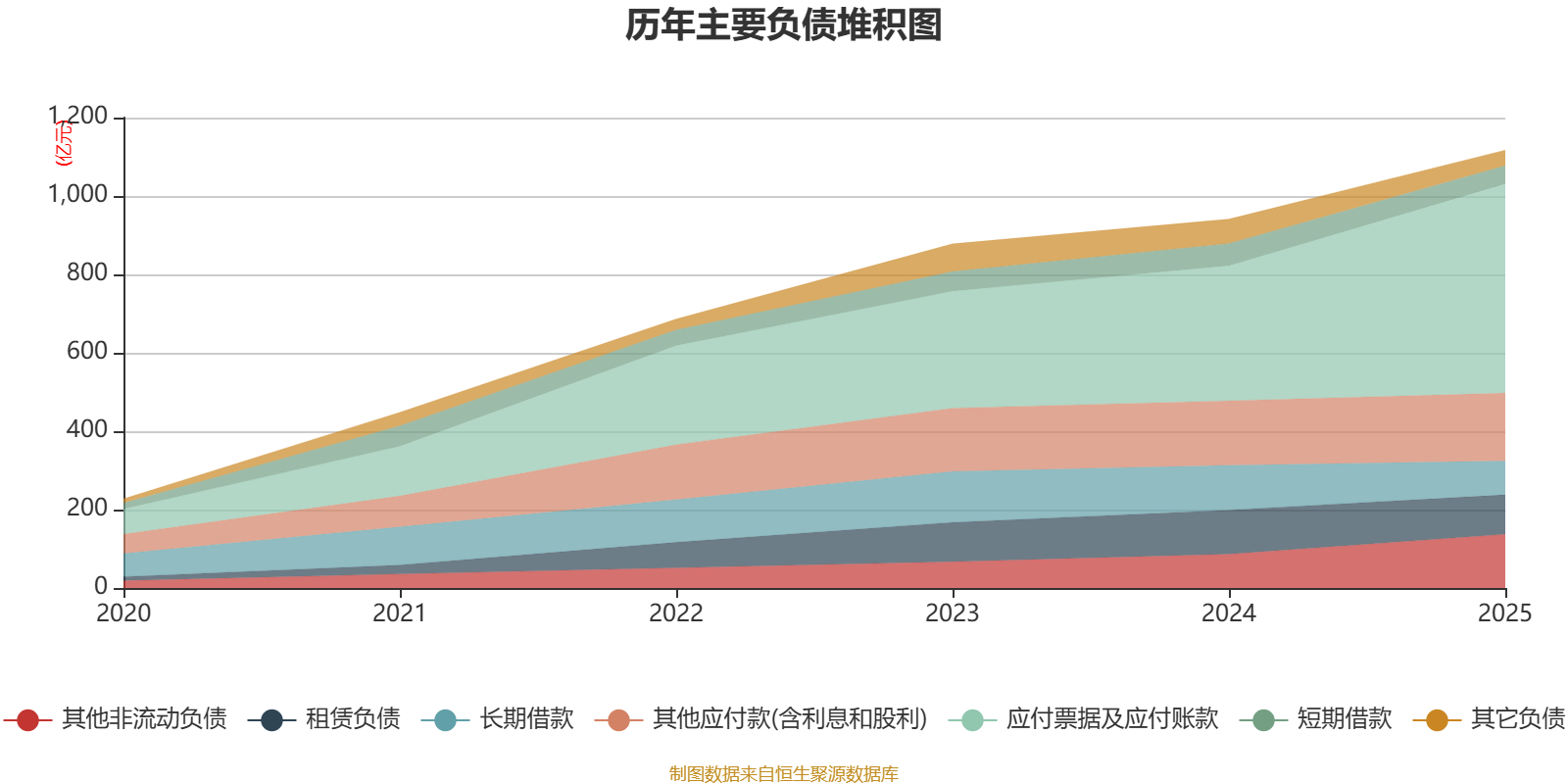 负债重大变化方面,截至2025年末,公司应付票据及应付账款较上期末增加55.03%,占公司总资产比重上升10.9个百分点;长期借款较上期末减少24.6%,占公司总资产比重下降3.7个百分点;其他非流动负债较上期末增加58.67%,占公司总资产比重上升2.99个百分点;租赁负债较上期末减少10.38%,占公司总资产比重下降2.35个百分点。