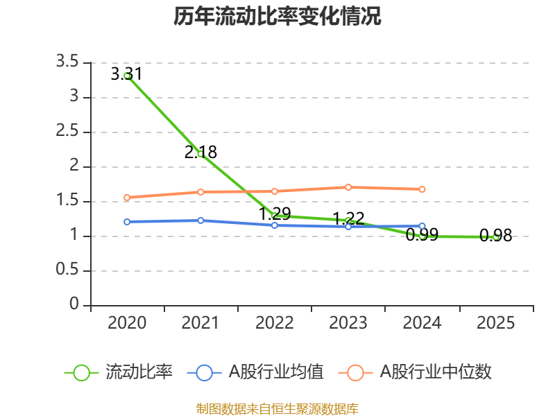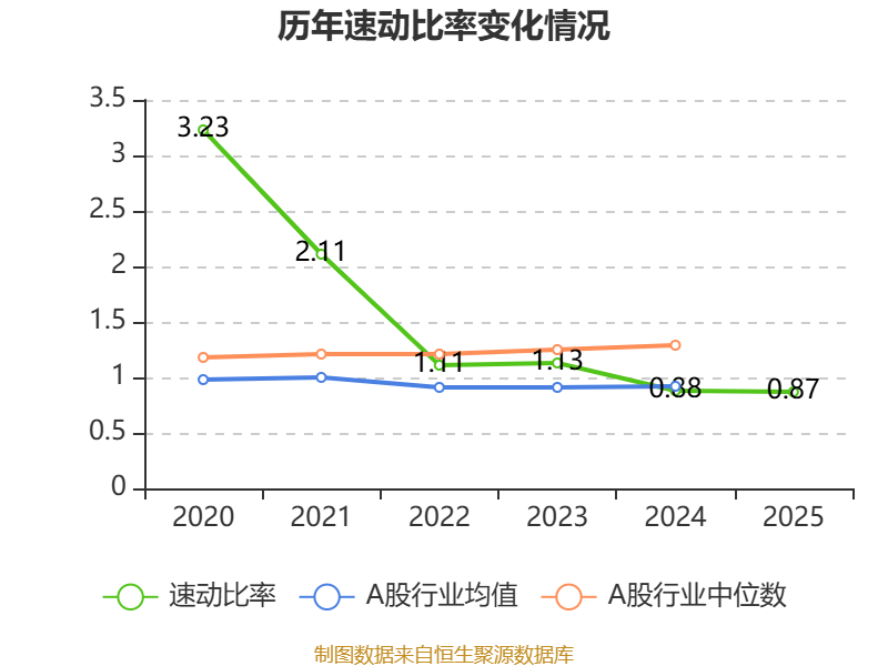 2025年,公司流动比率为0.98,速动比率为0.87。